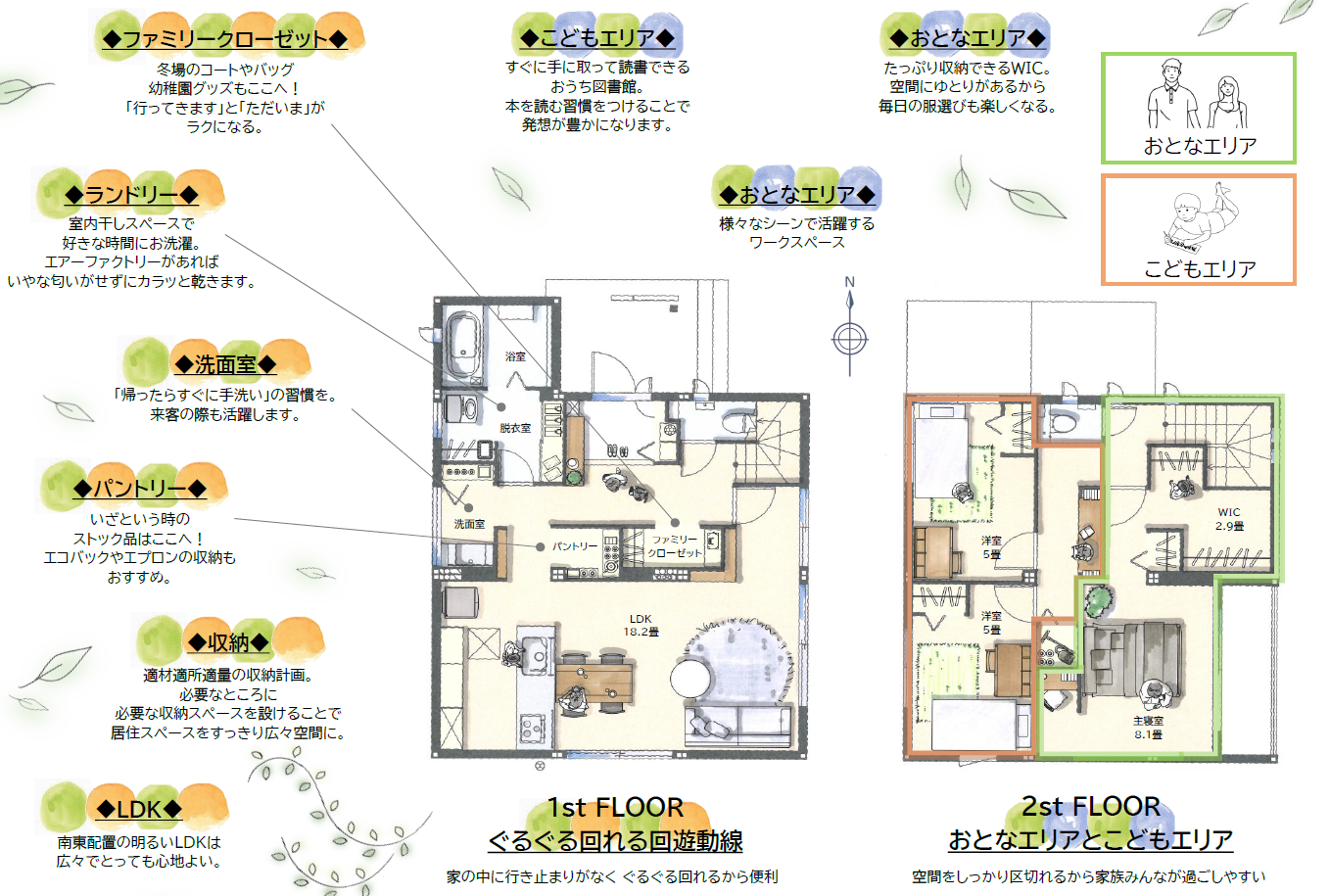 ぐるぐる回れる回遊動線を採用。